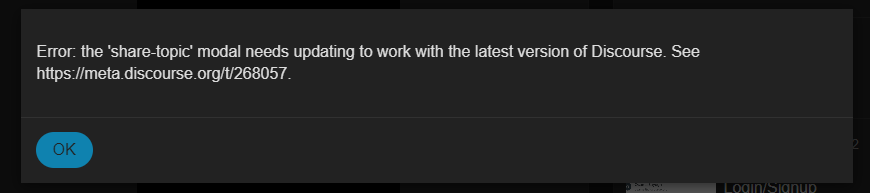 The share modal in the topic list has not been converted to the new modal component API. This error gets thrown on meta as well.