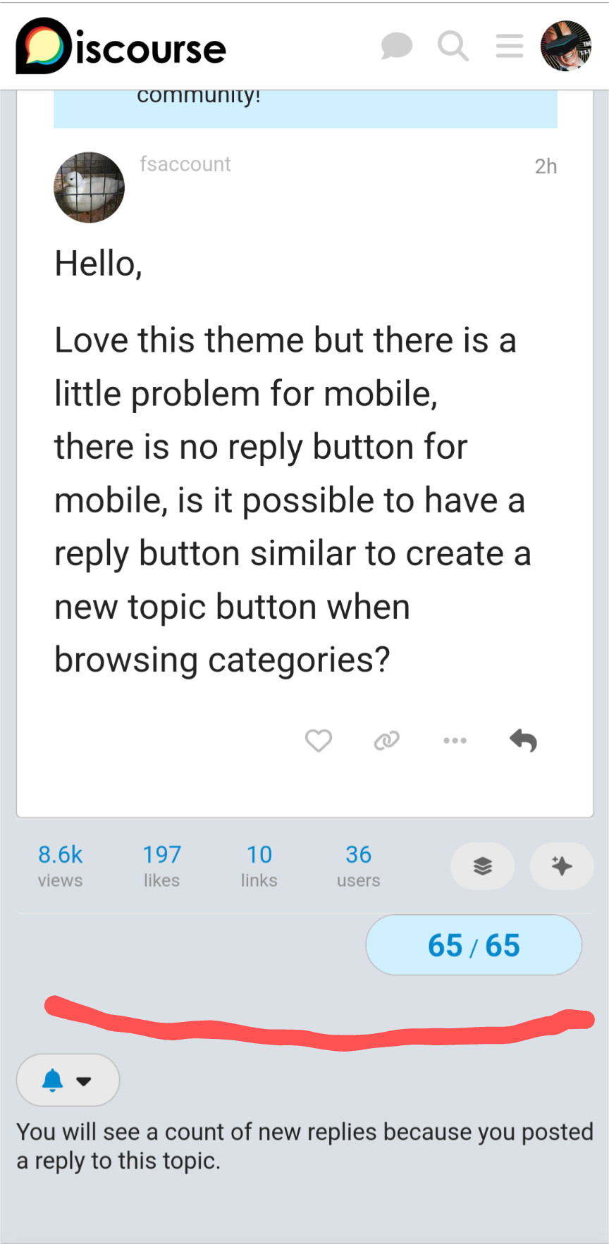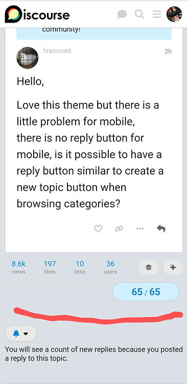 there is no reply button for mobile, is it possible to have a reply button similar to create a new topic button when browsing categories?