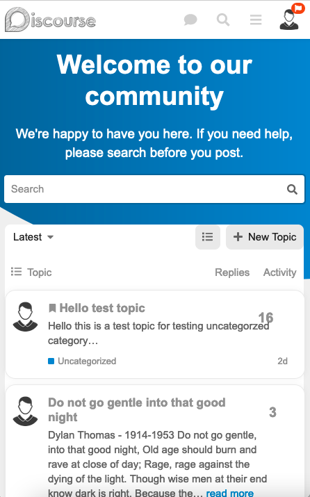 Once the Chat Plugin is enabled the Wrlcome banner if the Discourse Search Banner no longer displays the Welcome message.