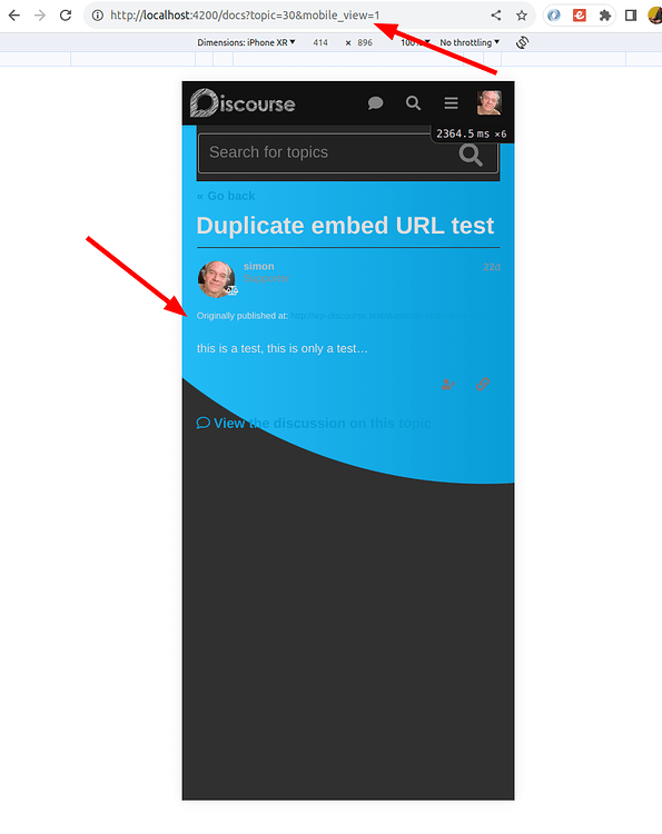 Yes. I’m testing mobile mode on my desktop by adding the ?mobile_view=1 parameter to the URL. The results should be the same as what you get on a mobile device. I’m definitely being served the mobile view in the screenshot.