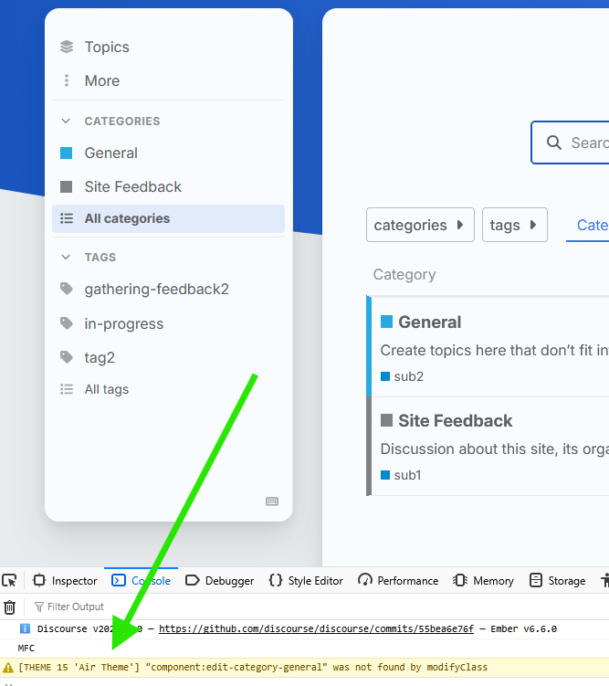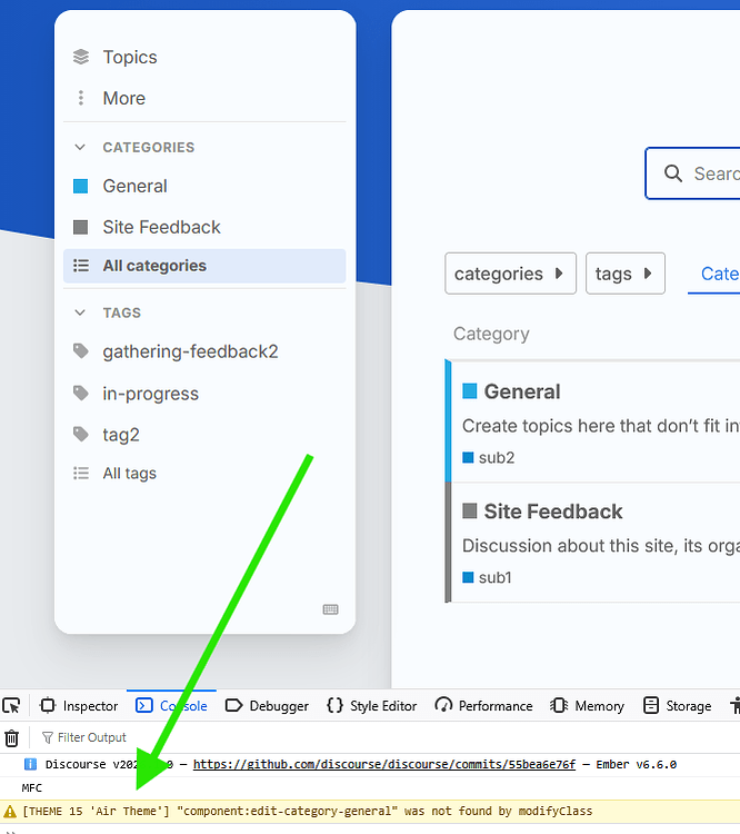 [THEME 2 'Air Theme'] "component:edit-category-general" was not found by modifyClass