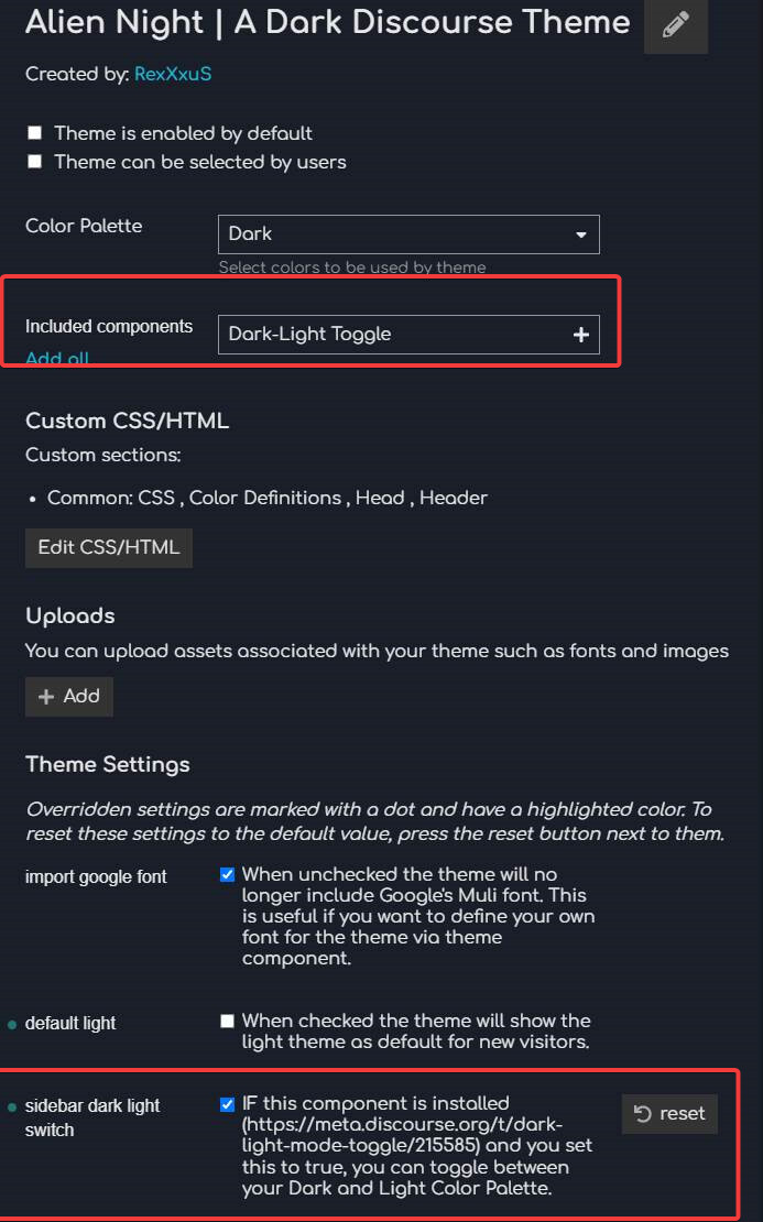 🛠️ Repository Link GitHub - B-iggy/alien-night-discourse-dark-theme: A night friendly dark Discourse theme - dark/light switcher inclusive