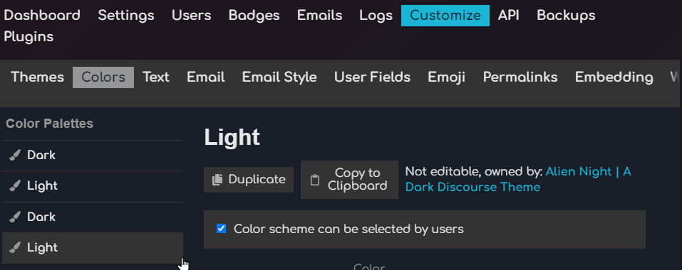 2. Select the Dark color here ( /admin/site_settings/category/all_results?filter=dark%20m )