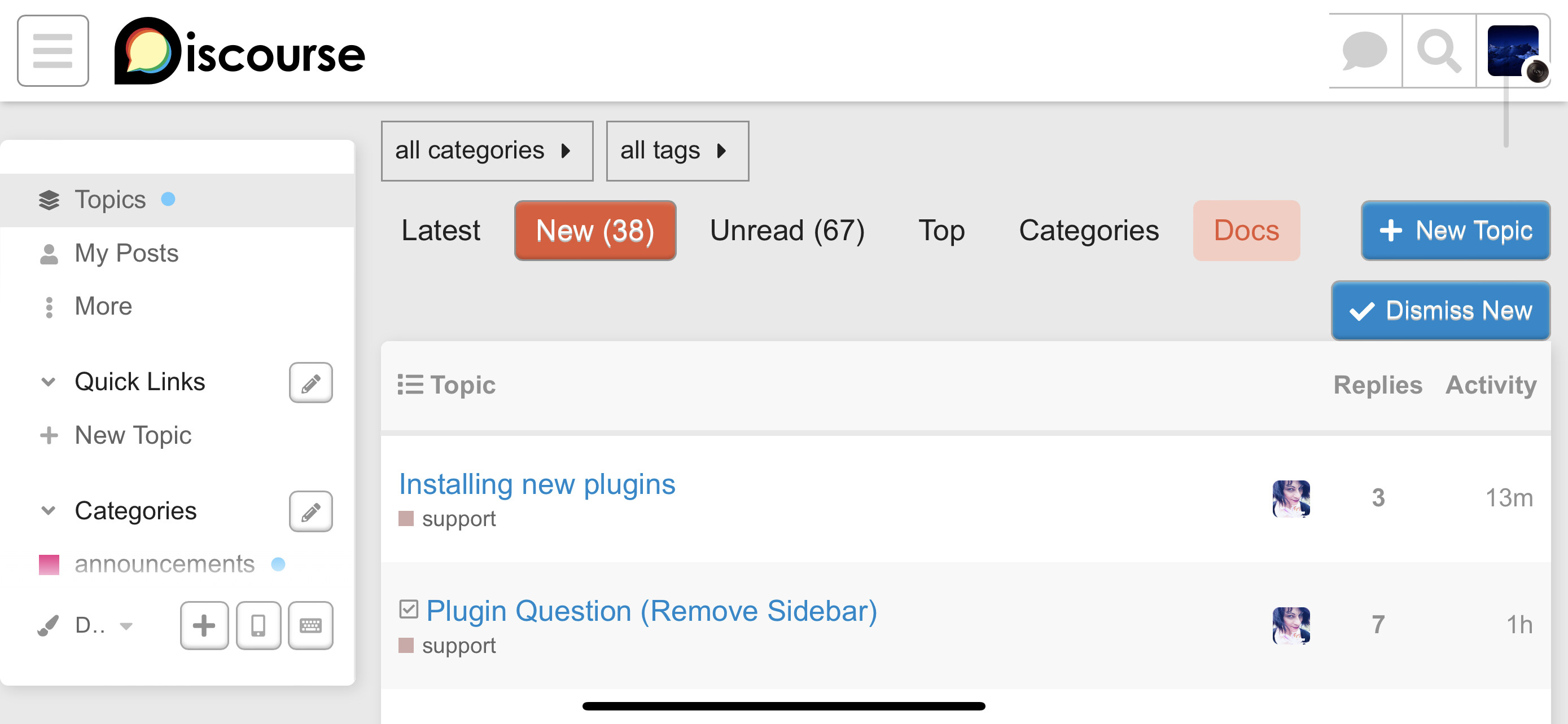 Unlike Discourse in 2013, The Discourse Classic theme supports desktop and mobile devices, multiple badge styles, and light/dark color schemes.