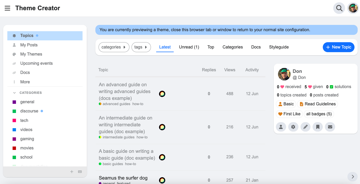Note: I’ll have to modernize the template to be compatible with the new Glimmer topic list. This process may change things compare the current theme. So if you modify the theme, the new version may will break your changes…