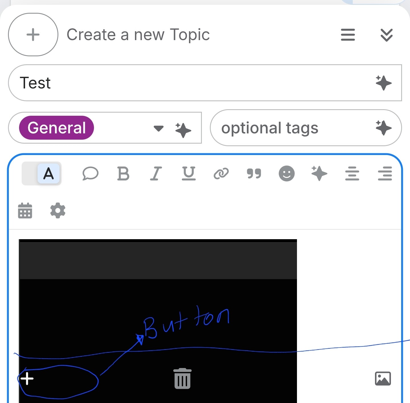 When creating a new topic on mobile in the new rich editor, if an image is added to the topic, the publish topic button does not work.