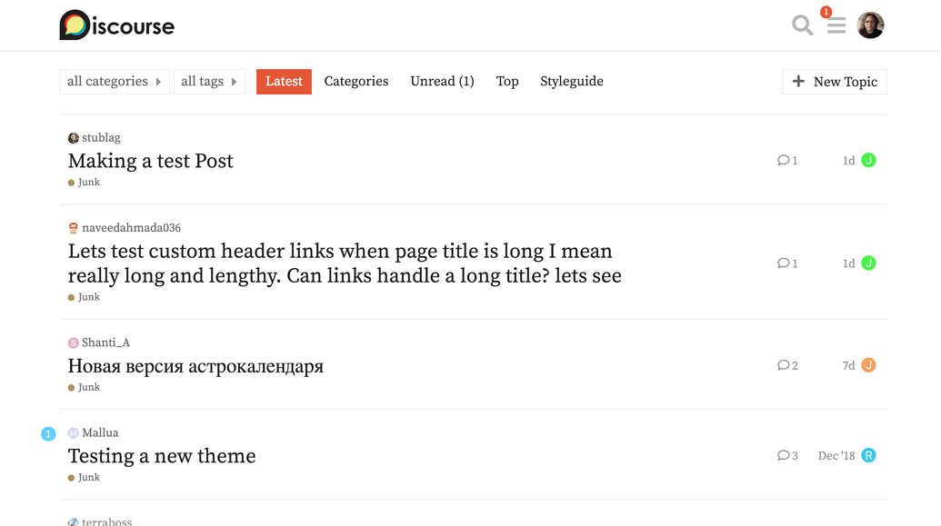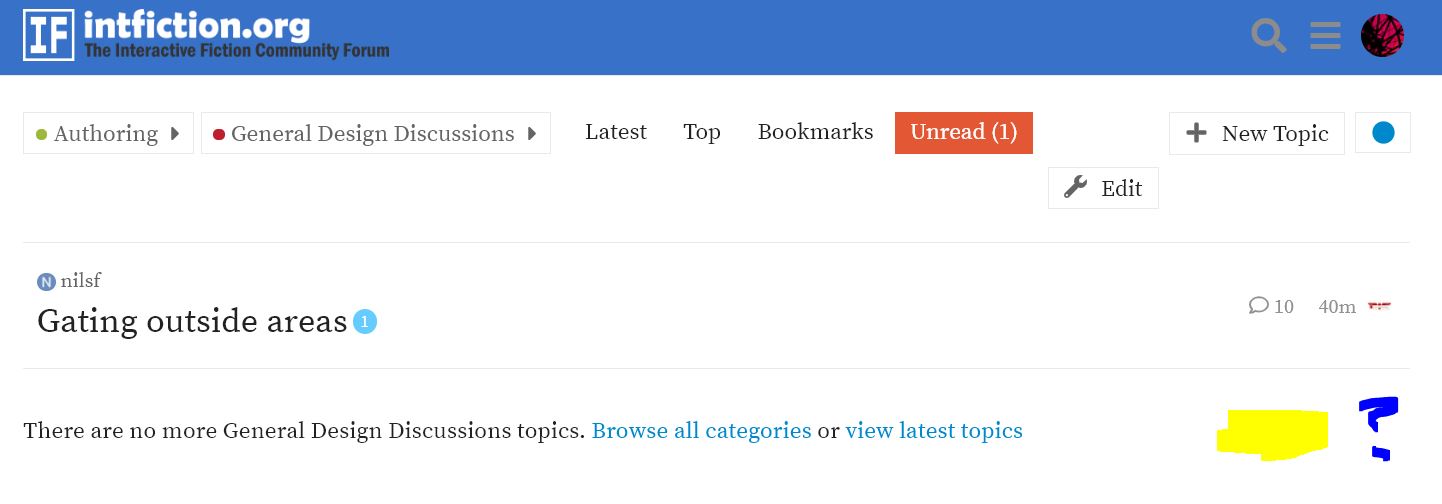 I’ve gone through and made text larger and removed just about anything redundant (and anything that I don’t use regularly). For example, I know that suggested topics are suggested topics, so I removed the header. I’ve used bulk select on the topic list maybe twice ever, so it’s gone. Views on the topic list? gone. Categories in the hamburger menu? gone.