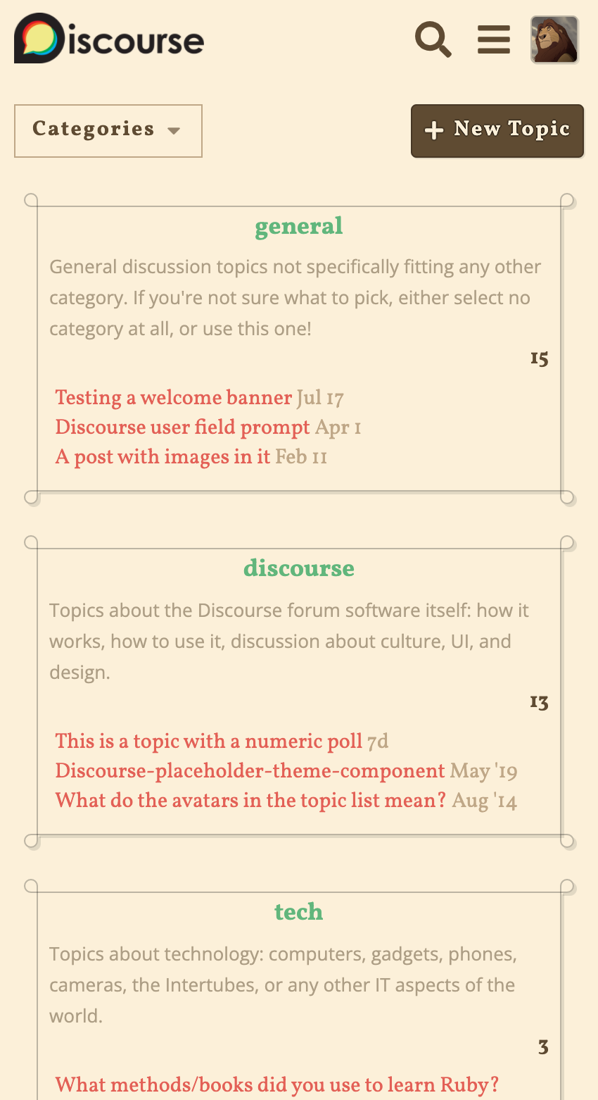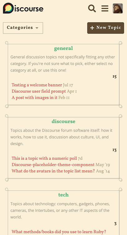 | New to Discourse Themes? | Beginnerโs guide to using Discourse Themes |