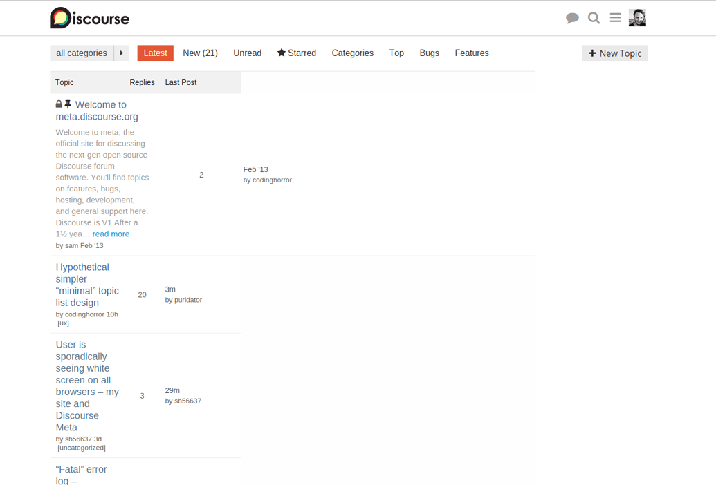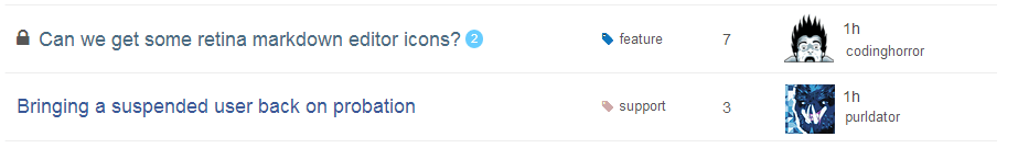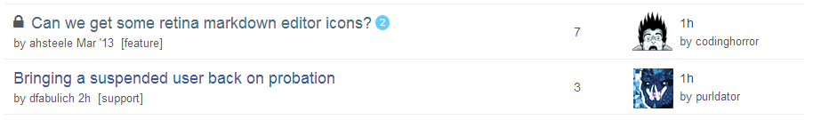 While yes, the Minimal Discourse edits proved a good point, I truly think only a few elements need to be removed. I specifically speak of the stars and the 5-avatar line in the topic listings. Everything else I think should stay and I think my little mock up from @sam’s initial screenshot with a bit of minor tweaking should replace that 5-avatar bar in each topic listing entry.. Maybe others might think differently about these opinions but as it is, there’s plenty of Discourse instances live on the net and I haven’t seen one instance where any other drastic changes were made that would suggest a certain ui feature is probably best to apply to core. The stars is one example of this. No one used the feature and many hid the stars with CSS. That’s been established.