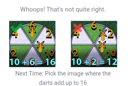 I had to do one the other day where it showed you 6 images of cartoon dartboards, and you had to click on the one where the darts added to 16, like this:
